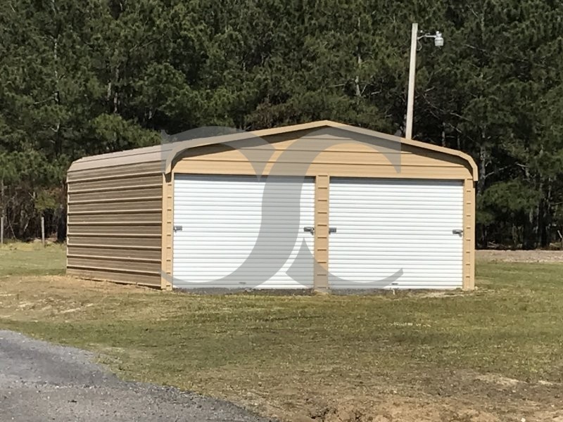 18' Wide x 21' Long x 8' High 2-Bay Regular Style with Regular Roof System (Economy). This enclosed metal garage will accommodate 1 small cars.
